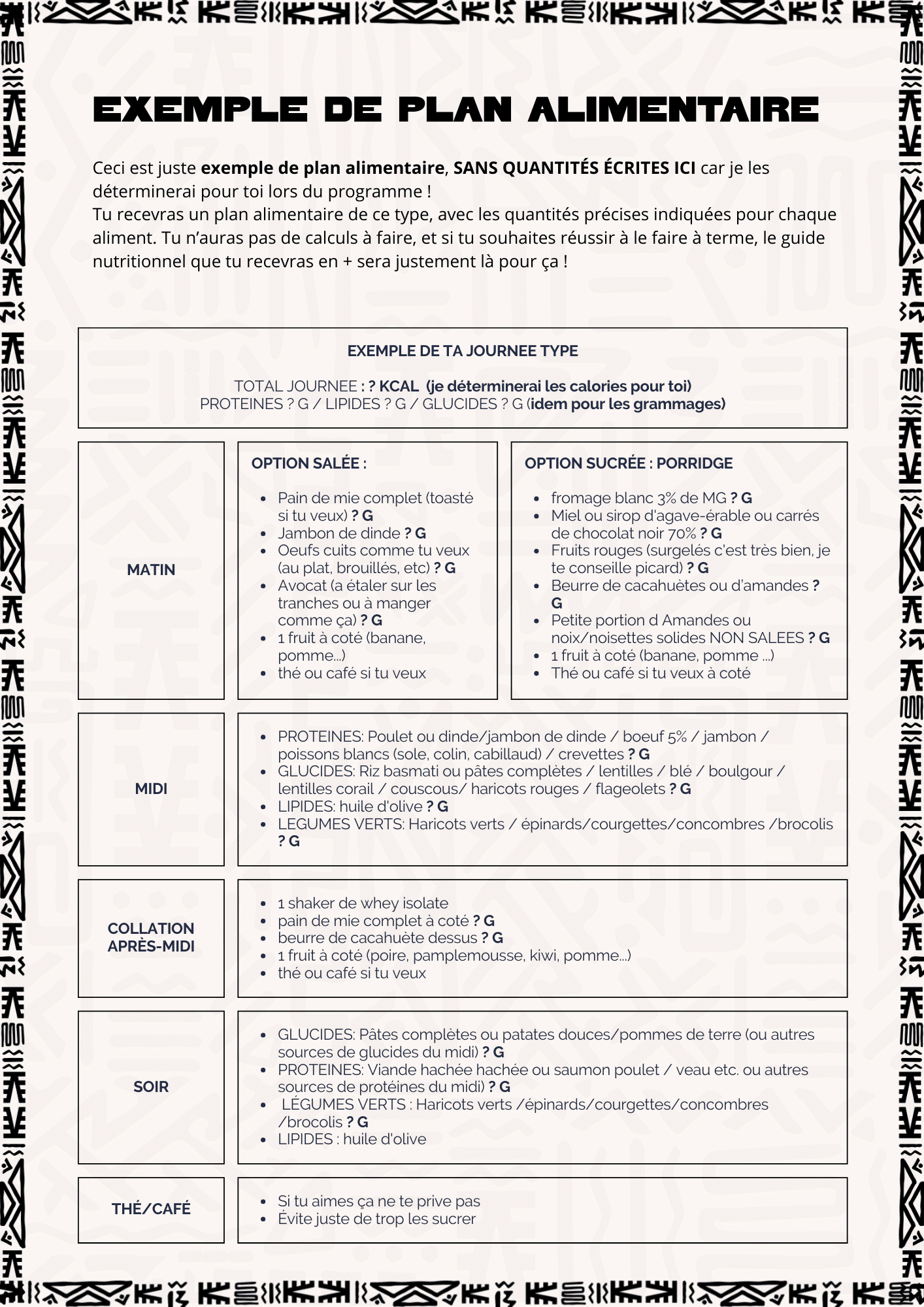 Plan NUTRITIONNEL 100% personnalisé